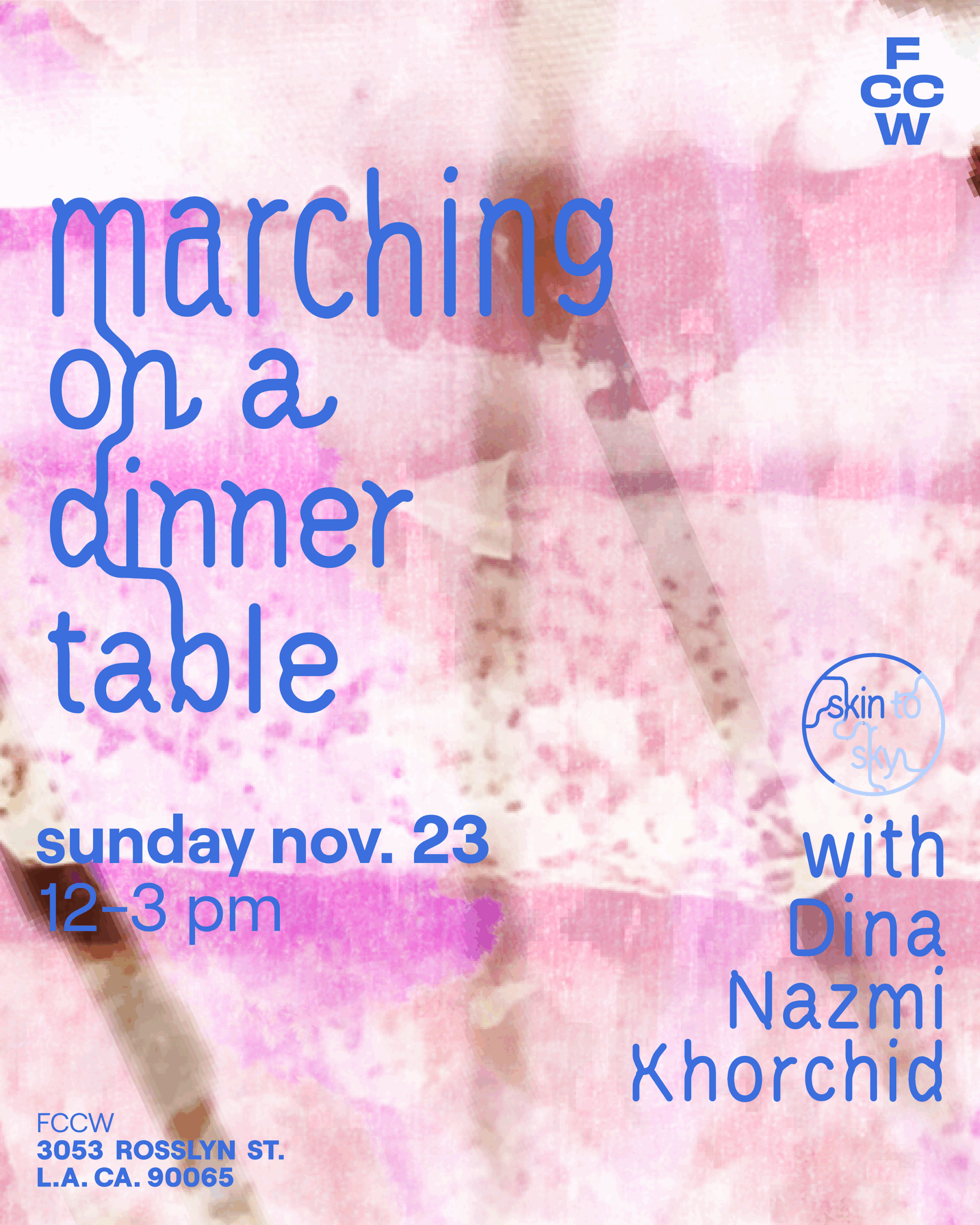Part of Silvi Naçi’s skin to sky residency, this workshop explores natural dyeing through the traditional celebratory Palestinian dish msakhan, reimagined on fabric, using onion skins, sumac, and pinecones — the same ingredients that flavor the dish. Participants will engage in eco-dyeing techniques that connect culinary and textile practices.